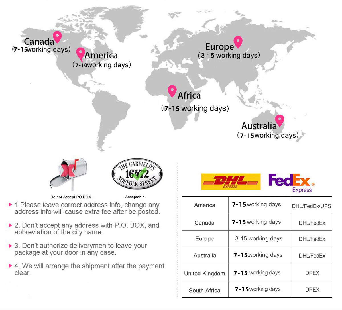 Note: Due to the impact of the epidemic on logistics, flights in different regions will also may be affected by local policies, and delivery may have delay. Please feel free to contact us if you have any questions and thank you for your understanding.