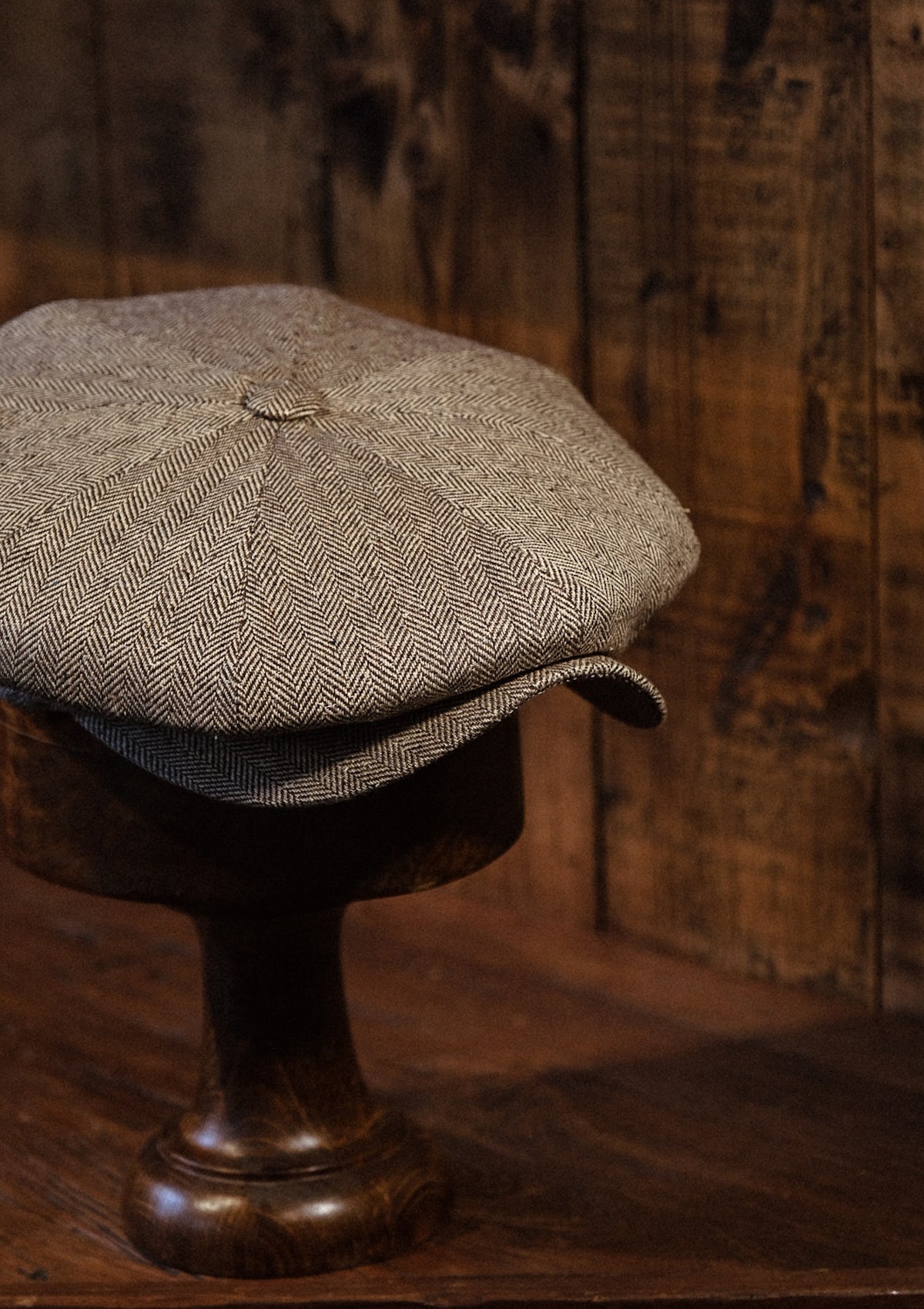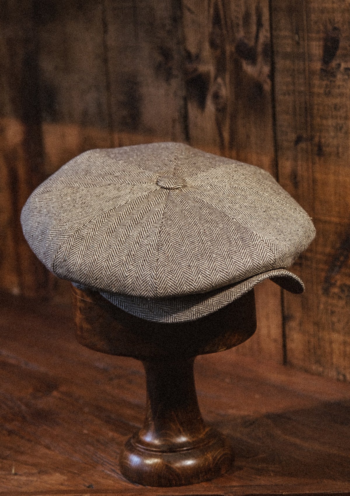 Experience the peak of style and quality with the Stanton Baker Boy Cap. Crafted in a wide fit 8-piece style from pure silk, this light grey micro-herringbone cap evokes the same timeless style worn by the members of Peaky Blinders. Enjoy the feeling of luxury and fine craftsmanship with this high-end fashion accessory.